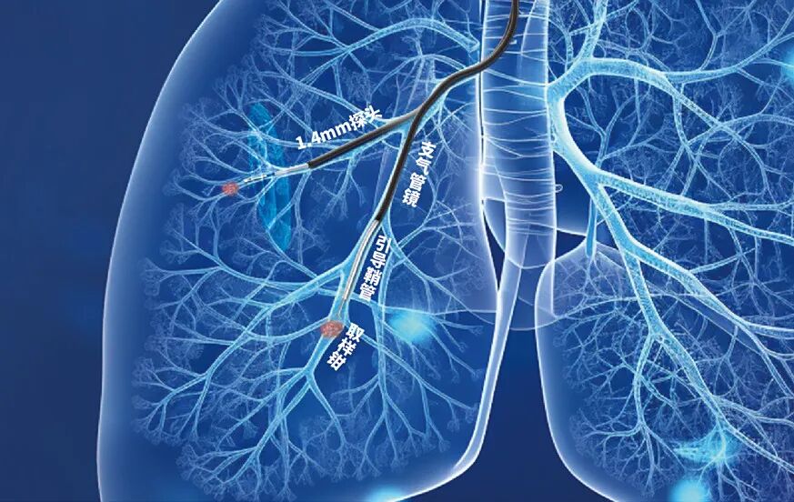 当患者胸部CT显示远离中央气道、靠近大血管的肺外周病变时,传统经胸壁穿刺出血风险高,而常规支气管镜又无法到达病灶位置。此时,“小超”凭借其超细、可弯曲的独特设计,能轻松通过支气管镜工作通道,深入远端细支气管,在其精准引导下进行经支气管镜肺活检,大幅提高了肺外周病变的诊断成功率。