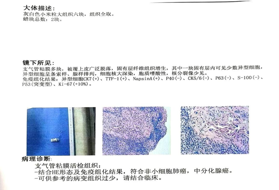 手术过程顺利,成功获取病变组织后,经病理检查提示为中分化腺癌,最终确诊患者为左肺恶性肿瘤(腺癌,cT1N0M0 IA 期) 。这一精准诊断为患者争取到了手术治疗的关键机会,为后续康复奠定了重要基础。