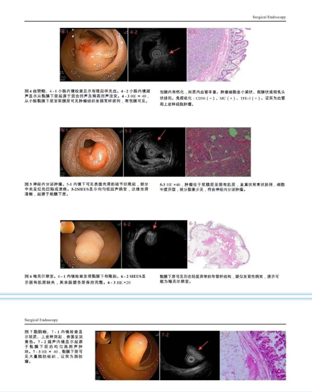 结论得出小肠各种类型的黏膜下病变在小肠超声内镜评估中均表现出不同的特征。小肠内镜仅能观察消化道的黏膜病变,而无法观察到更深层的黏膜层,则小肠超声内镜的使用弥补了这一不足,有助于确定小肠黏膜下肿瘤的起源层、大小和回声模式,从而指导进一步的治疗。
